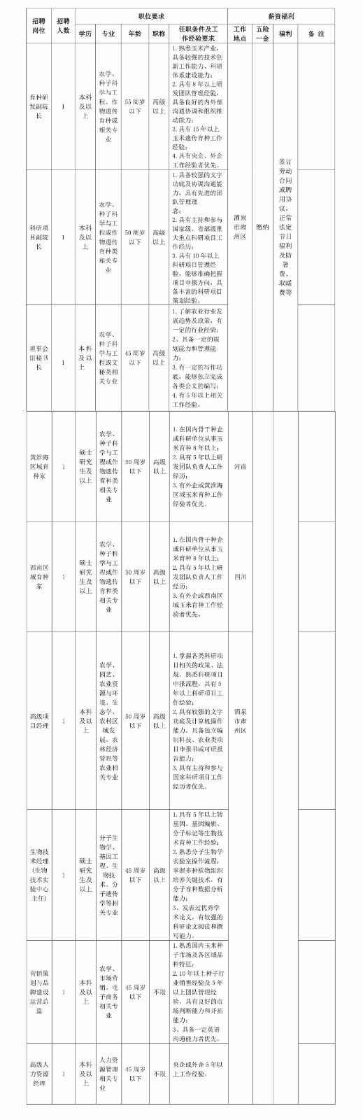 甘肅省玉米種業(yè)研究院有限公司招聘公告